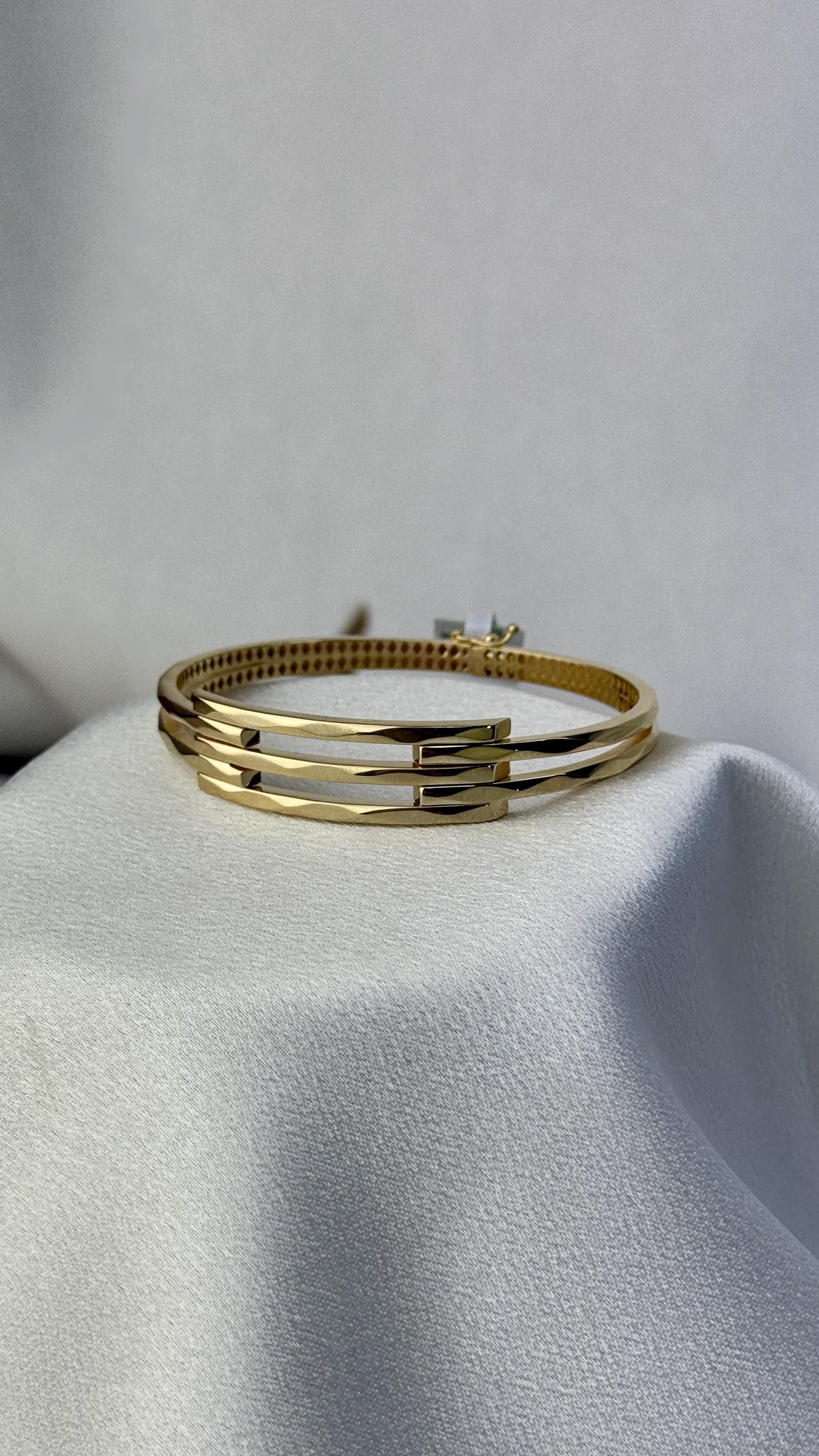 👑 8 Ayar 9,30 Gram 3 Sıra Desenli Kaburga Kelepçe Altın Bilezik 👑