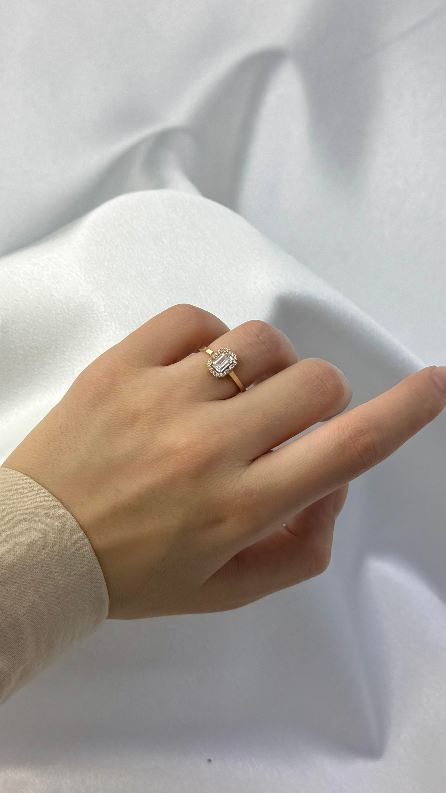 Bu göz alıcı yüzük, 8 ayar altın kullanılarak tasarlanmış olup 1,49 gram ağırlığındadır. İnce ve şık formuyla parmakta hafifçe yer alırken, baget kesim zirkon taş detayıyla ışıltısını gözler önüne serer.