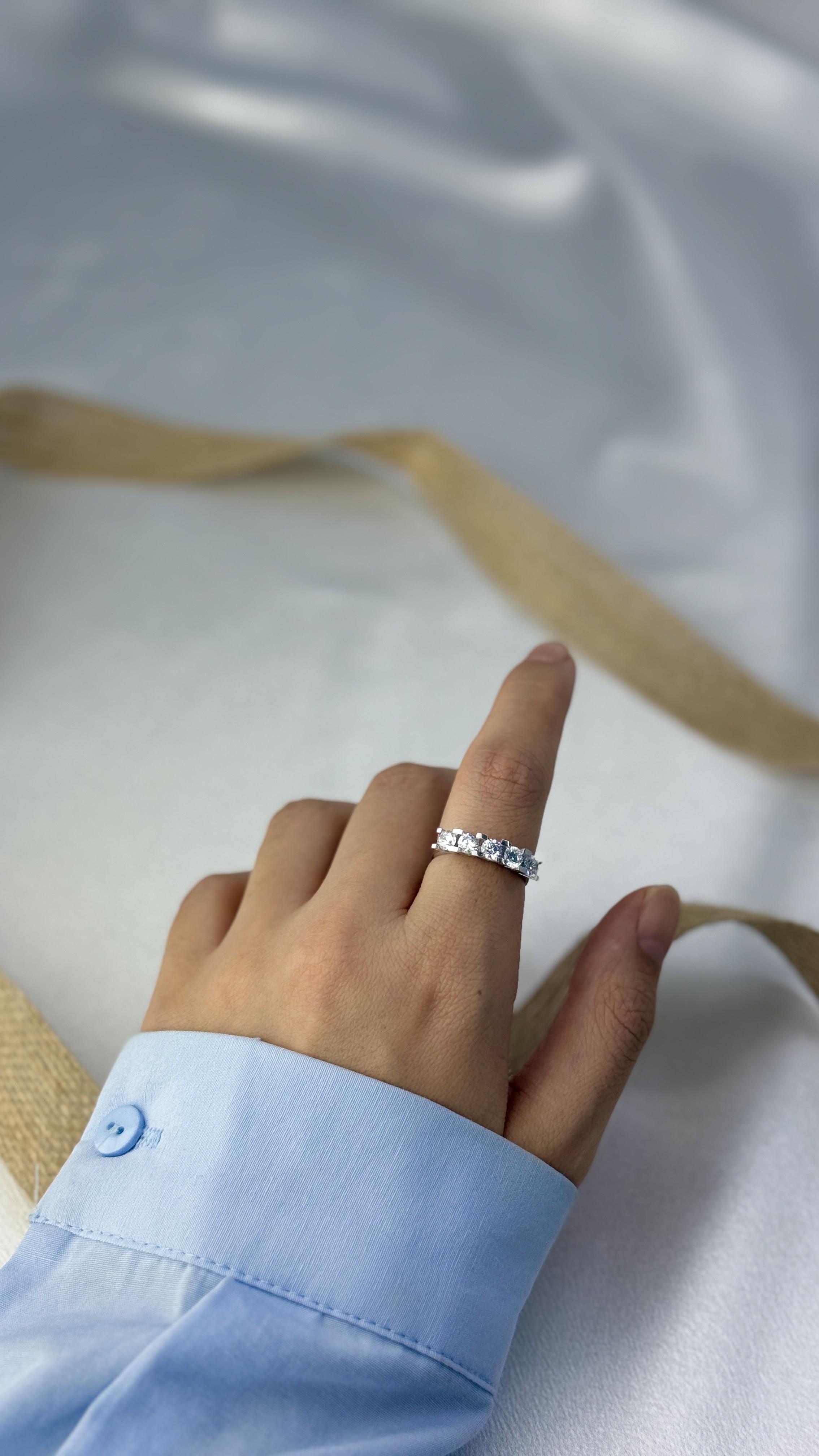 Beş taşın anlamı, beyaz altının zarafetiyle birleşti… Bu özel yüzük; aşk, sadakat, mutluluk, huzur ve güveni temsil eder. 8 ayar beyaz altından üretilmiş olup 2,69 gram ağırlığındadır. Işıltılı taş dizilimiyle hem duygusal hem de şık bir armağan arayanlar için ideal bir tercihtir.
