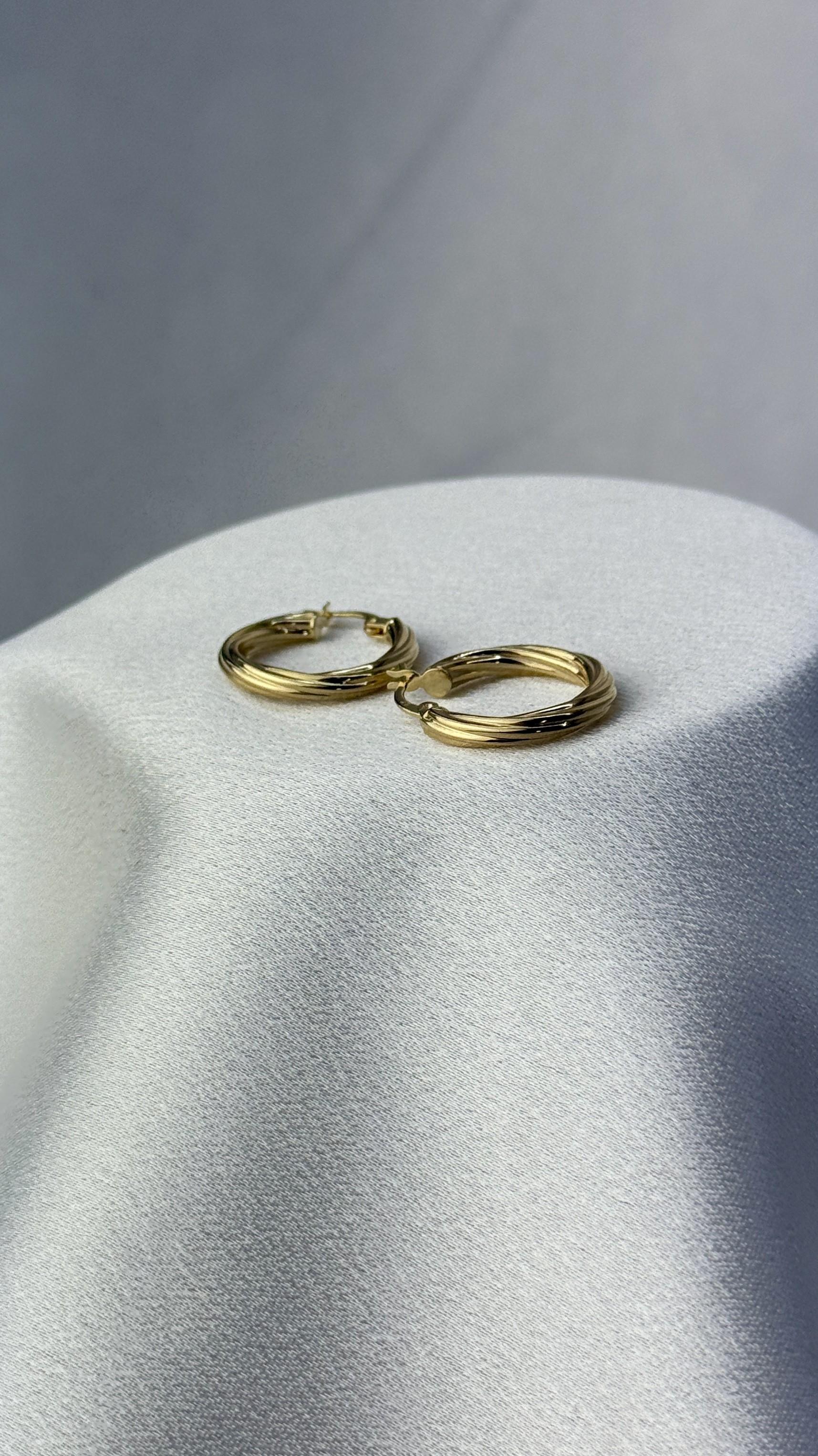Klasik halka formuna hareketli bir dokunuş: Burgu desenli bu zarif küpe, 2 gram ağırlığıyla günlük kullanımda hafifliği, şıklığında ise ışıltıyı sunuyor. 8 ayar altının sıcak tonlarıyla tasarlanan bu model, hem modern hem de zamansız bir stilin parçası olmaya aday. 🌟