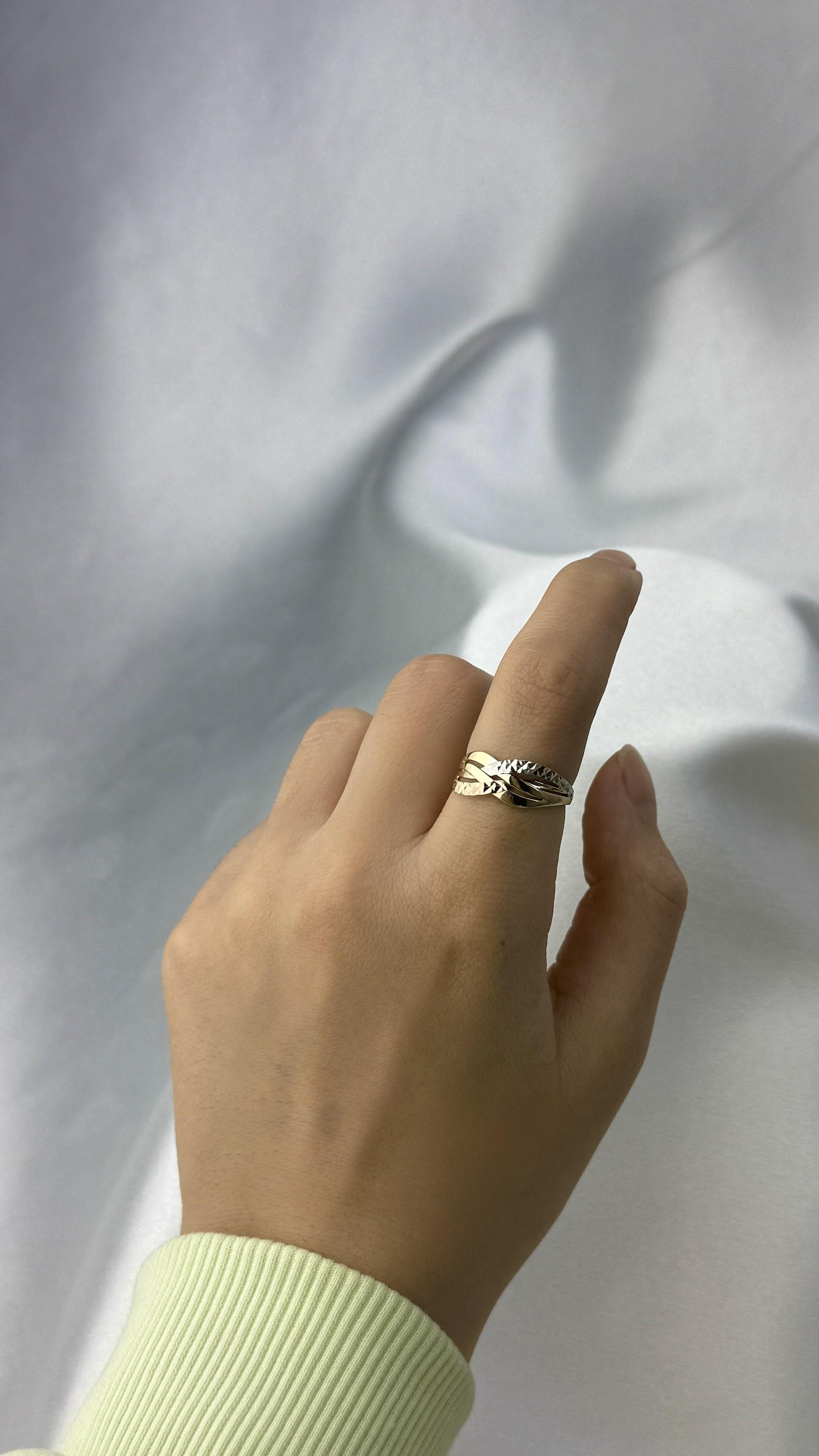 14 Ayar 1,9 Gram Çift Renk İşlemeli Örgü Altın Yüzük ✨