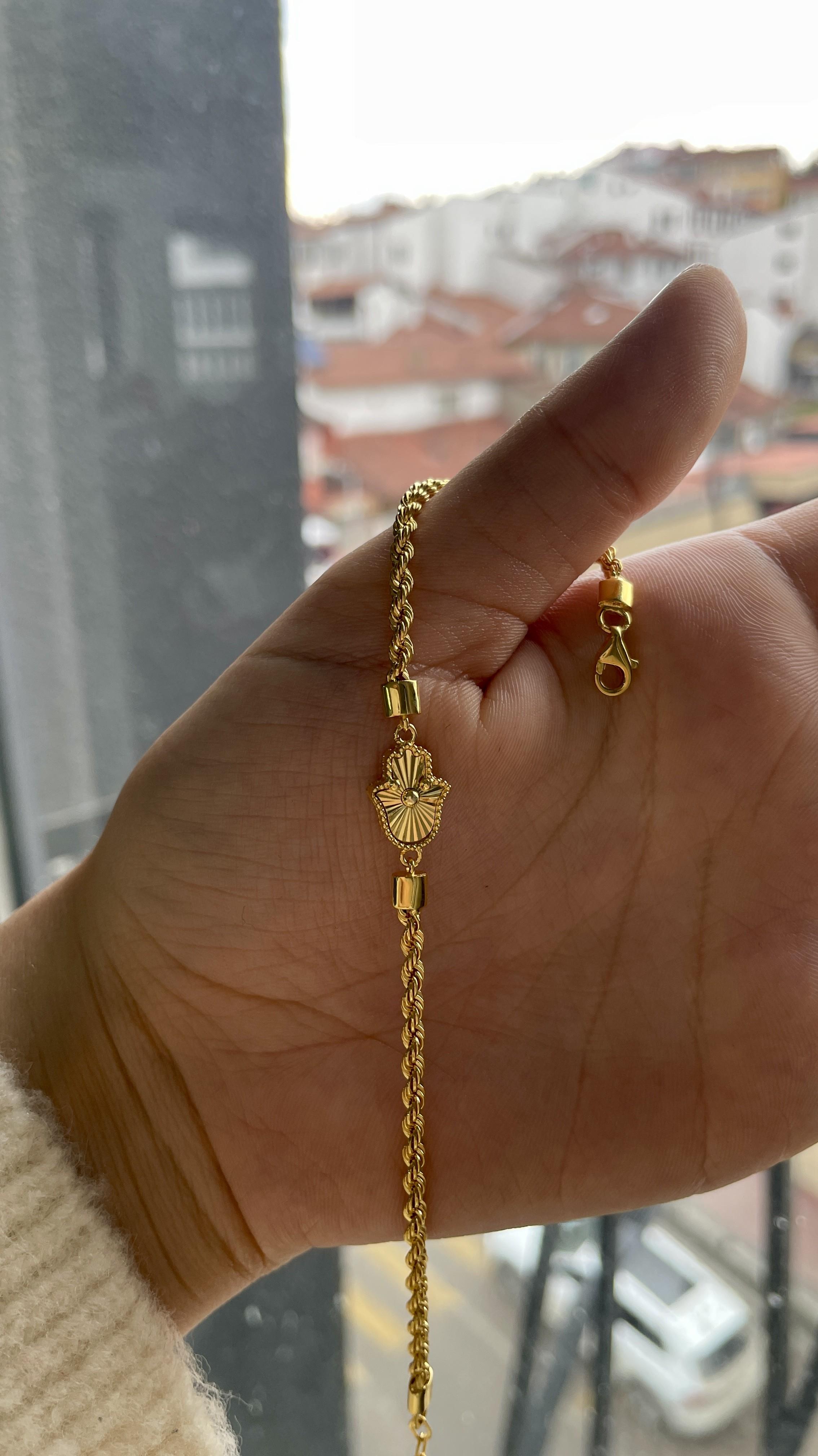 Fatma Ana Eli Figürlü Altın Örgü Zincir Bileklik