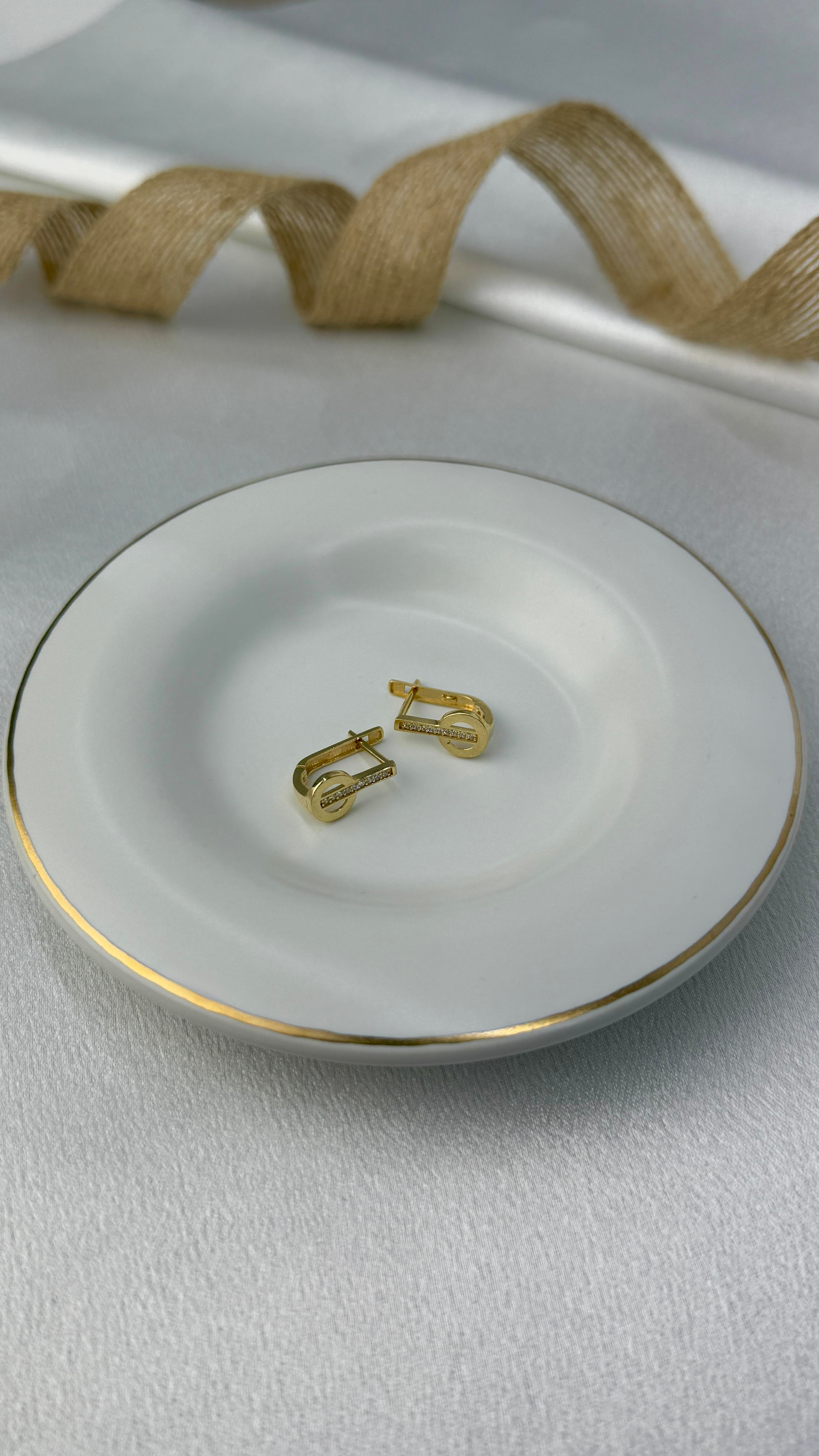 Modern ve Şık: 8 Ayar 2,01 Gram Halka ve Çubuk Motifli Taşlı Altın Küpe ✨