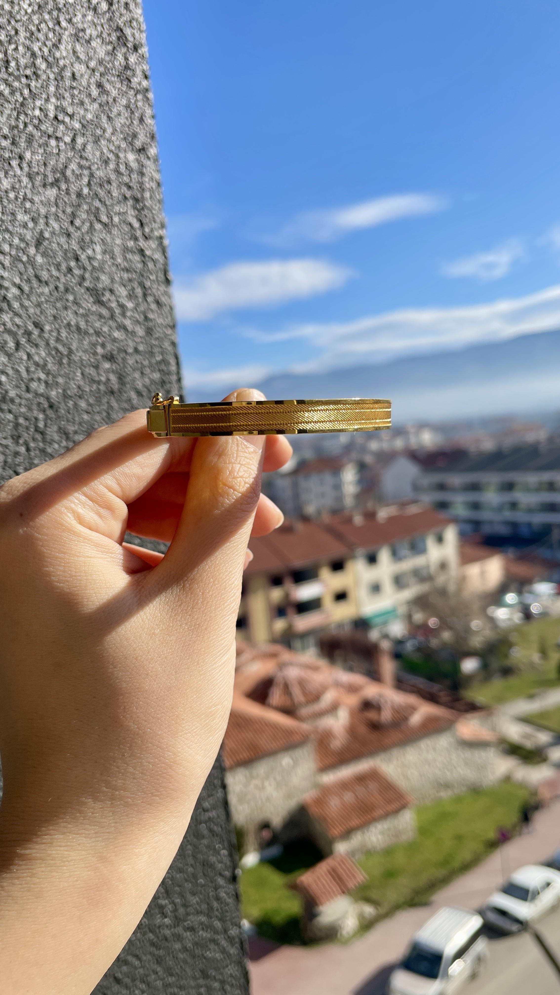 Şıklığı ve zarafeti bir araya getiren 8 Ayar Hasır Kelepçe Altın Bilezik, 11,12 gram ağırlığında ve 6 cm çapa sahiptir. İnce işçiliği ve göz alıcı hasır deseniyle klasik ve modern tarzı mükemmel bir şekilde buluşturur! ✨💛