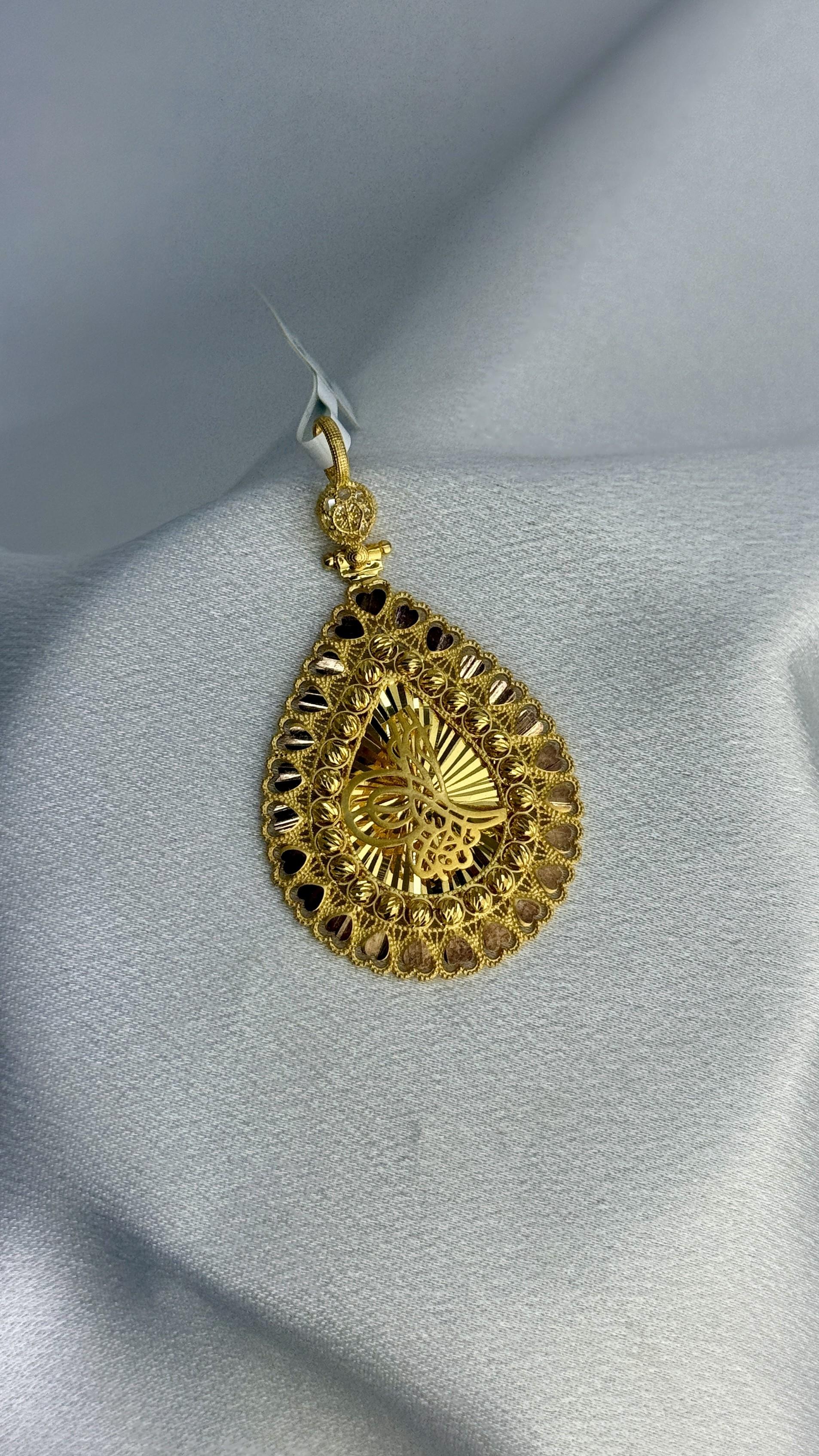 📌 Altın Ayarı: 8 Ayar📌 Gramaj: 5,77 gram📌 Tasarım: Kalp figürlü, tuğra motifli, dorika toplarla süslenmiş📌 Zincir: Ürüne dahil değildir