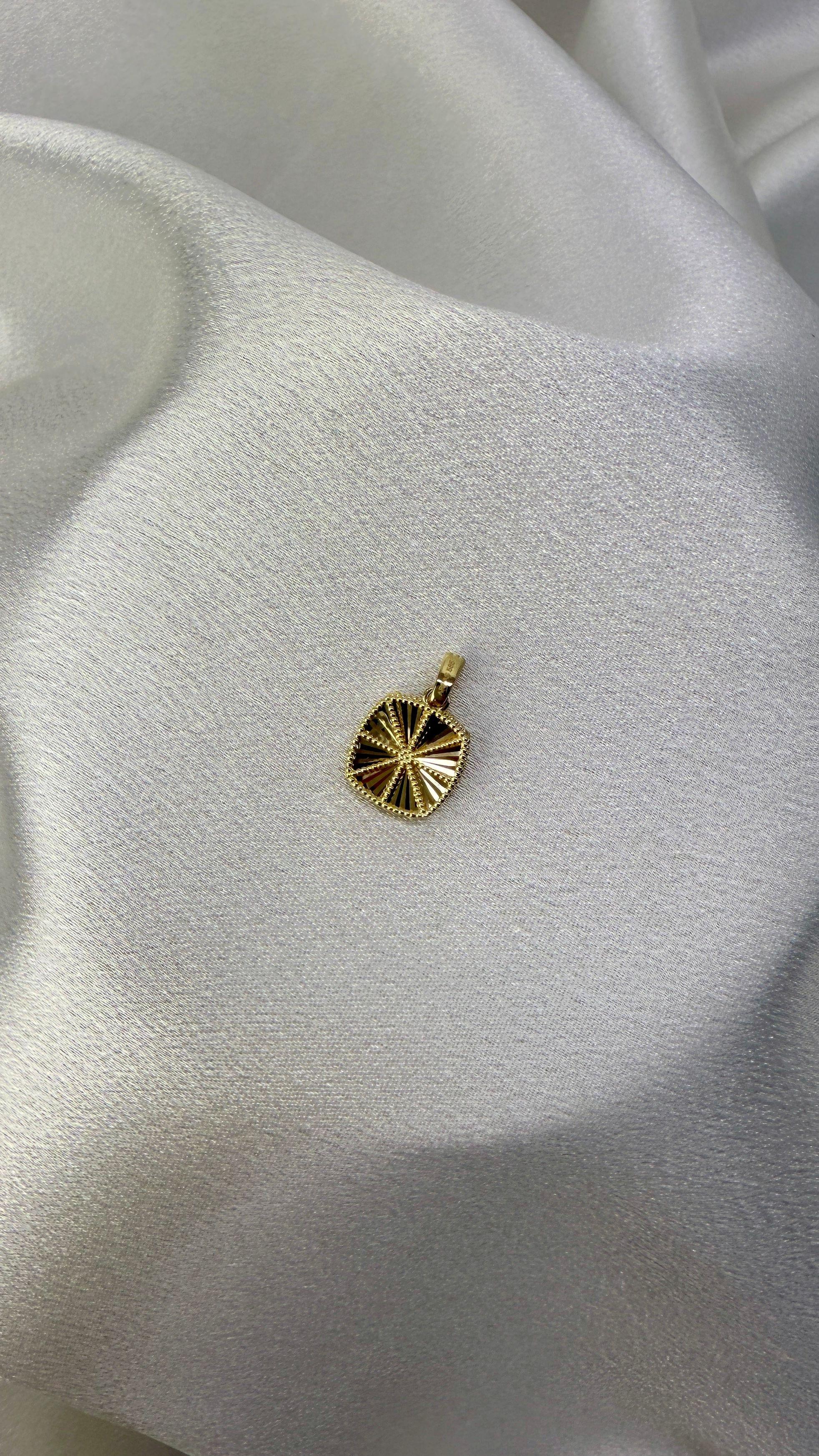 Zarafetin ve modern tasarımın buluştuğu kare parlak altın kolye ucu, minimal ve şık tarzıyla her kombine uyum sağlar. 14 ayar altından üretilmiş ve 1,05 gram ağırlığında olan bu özel parça, ışığı mükemmel şekilde yansıtan pürüzsüz yüzeyi ile dikkat çeker.