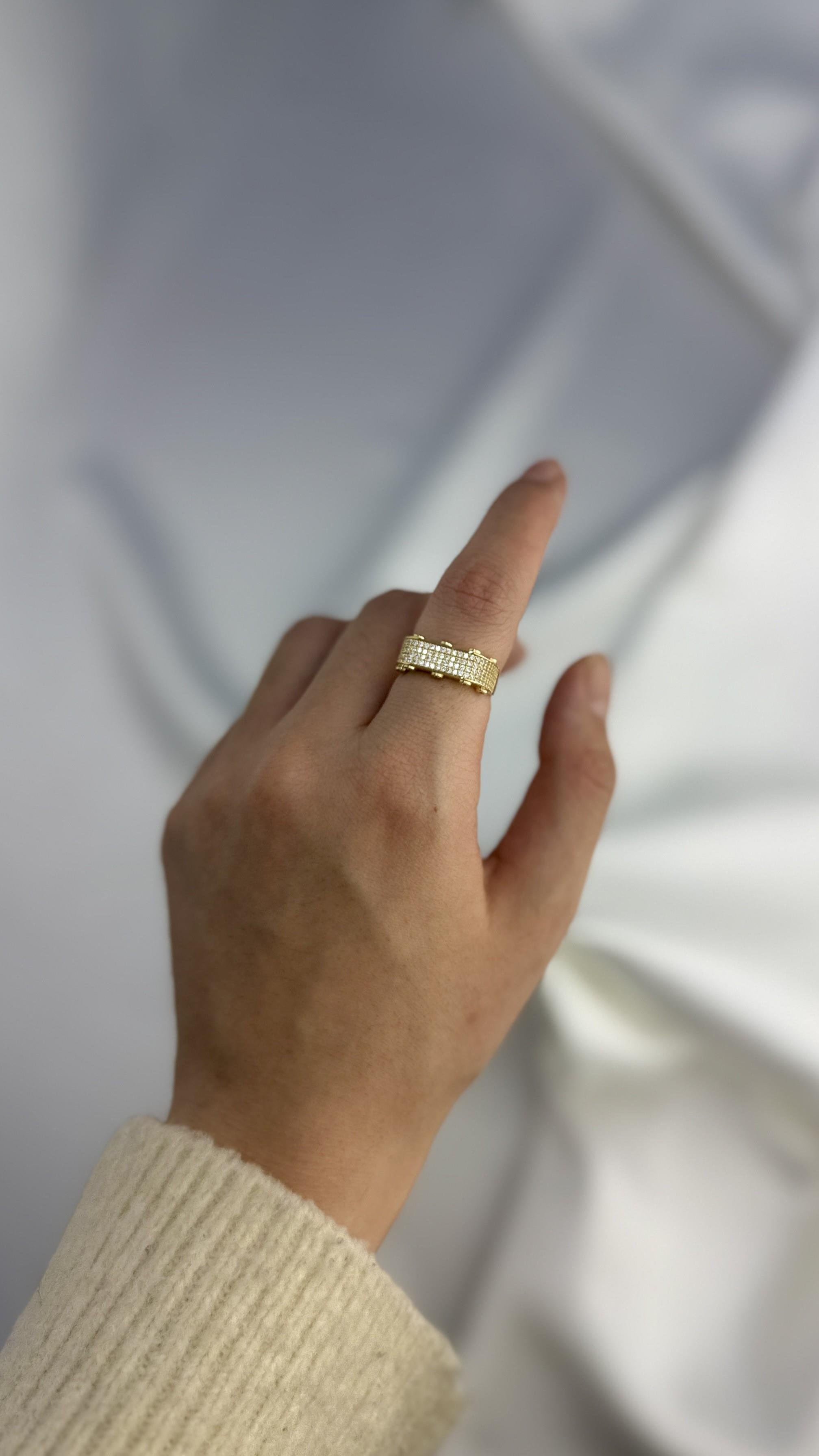 Şık ve çağdaş çizgileriyle dikkat çeken bu altın yüzük, parlak zirkon taşlarıyla göz kamaştırıyor. Günlük stilinize zarafet katarken, özel günlerde de şıklığınızın tamamlayıcısı olacak. 💫
