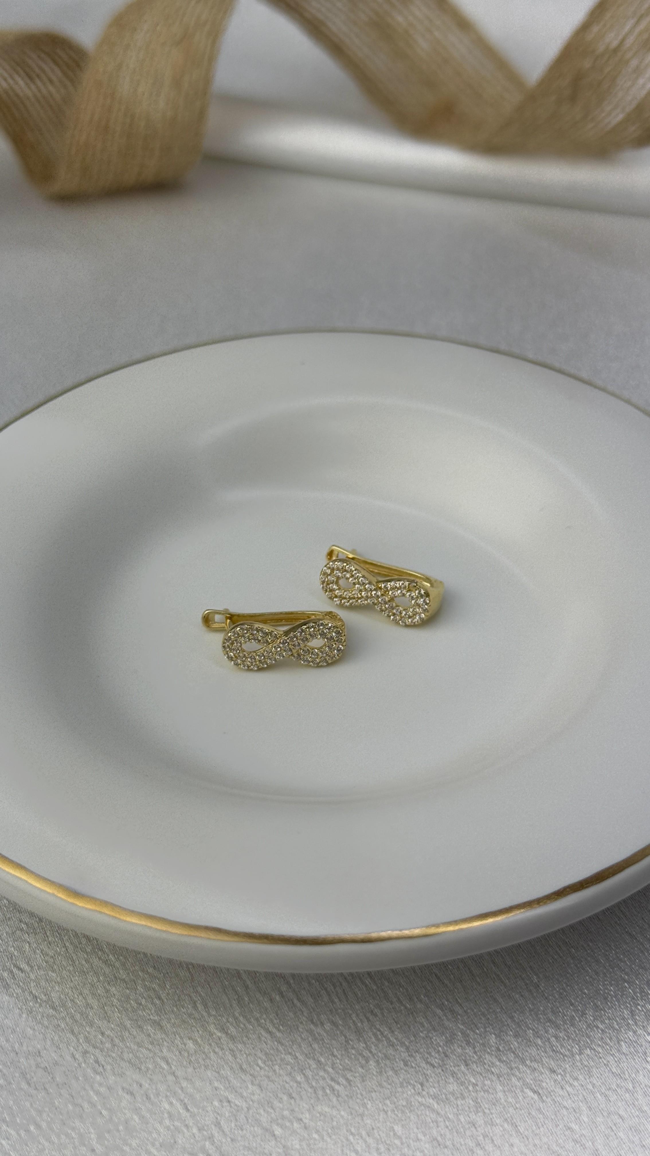 Zarafeti ve anlamı bir arada taşıyan sonsuzluk figürlü altın küpe, parıltılı taş detaylarıyla göz kamaştırıyor. Sevdiklerinize özel bir hediye ya da kendi stilinizi tamamlayacak zamansız bir parça!