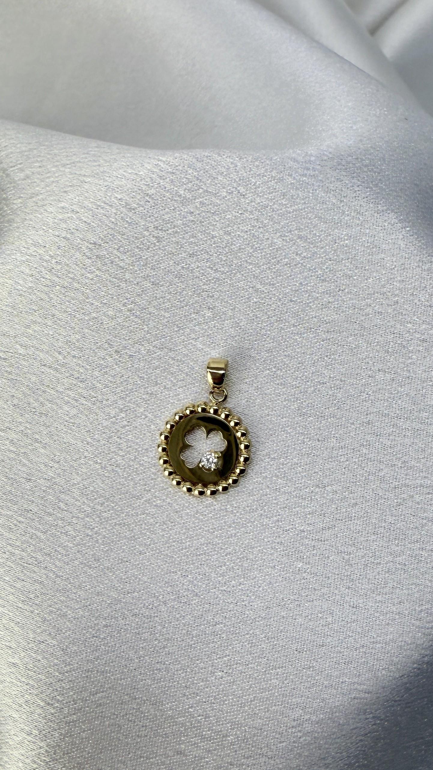Şıklığı ve uğuru bir araya getiren taşlı yonca figürlü altın kolye ucu, zarif tasarımıyla göz kamaştırıyor. 14 ayar altından üretilmiş ve 1,43 gram ağırlığında olan bu özel parça, üzerindeki taşlarla ışıltılı bir görünüm sunarak tarzınıza zarif bir dokunuş katıyor.