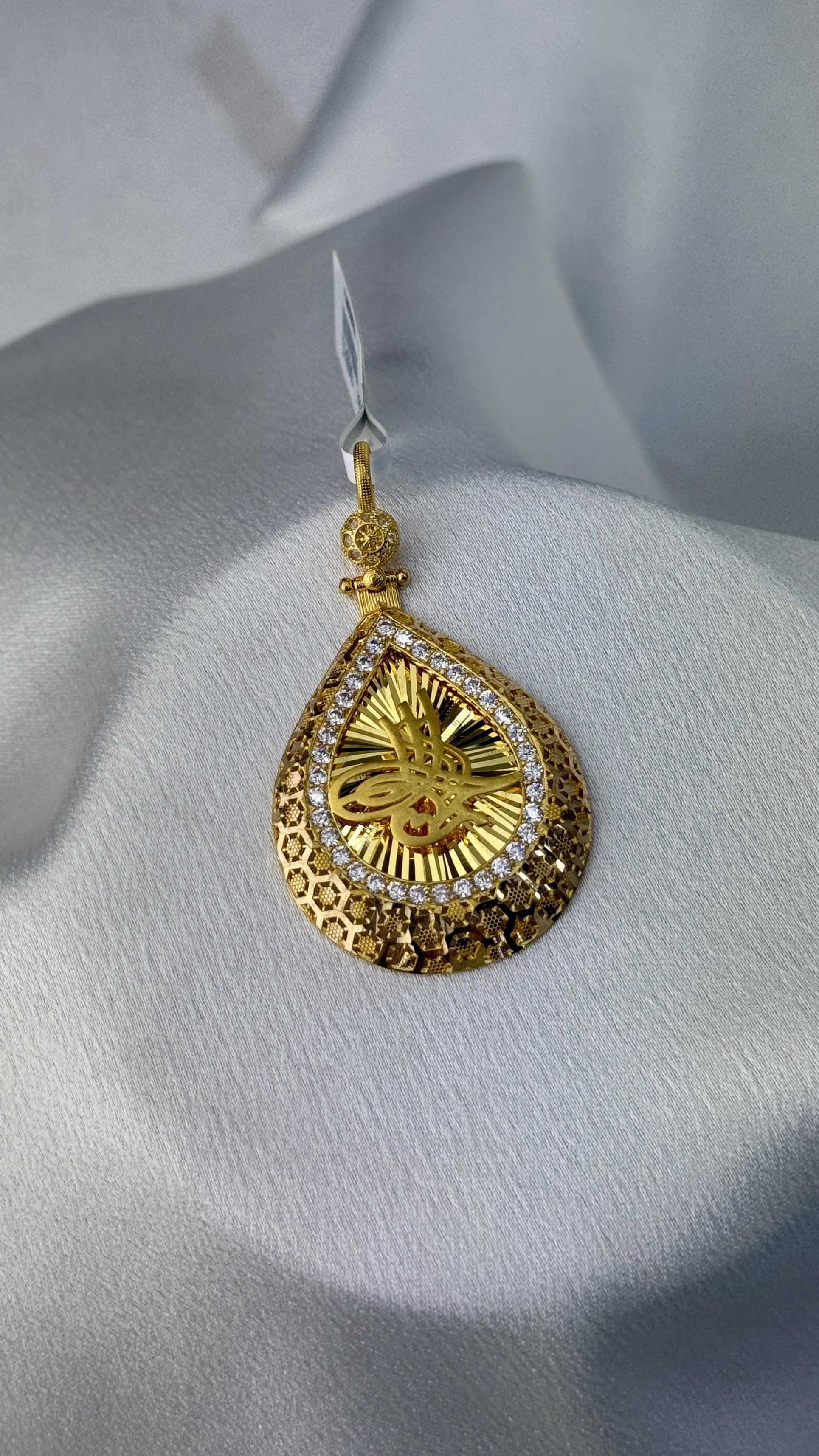 💫 8 Ayar 7,25 Gram Tuğralı Taşlı Damla Altın Kolye Ucu 💫