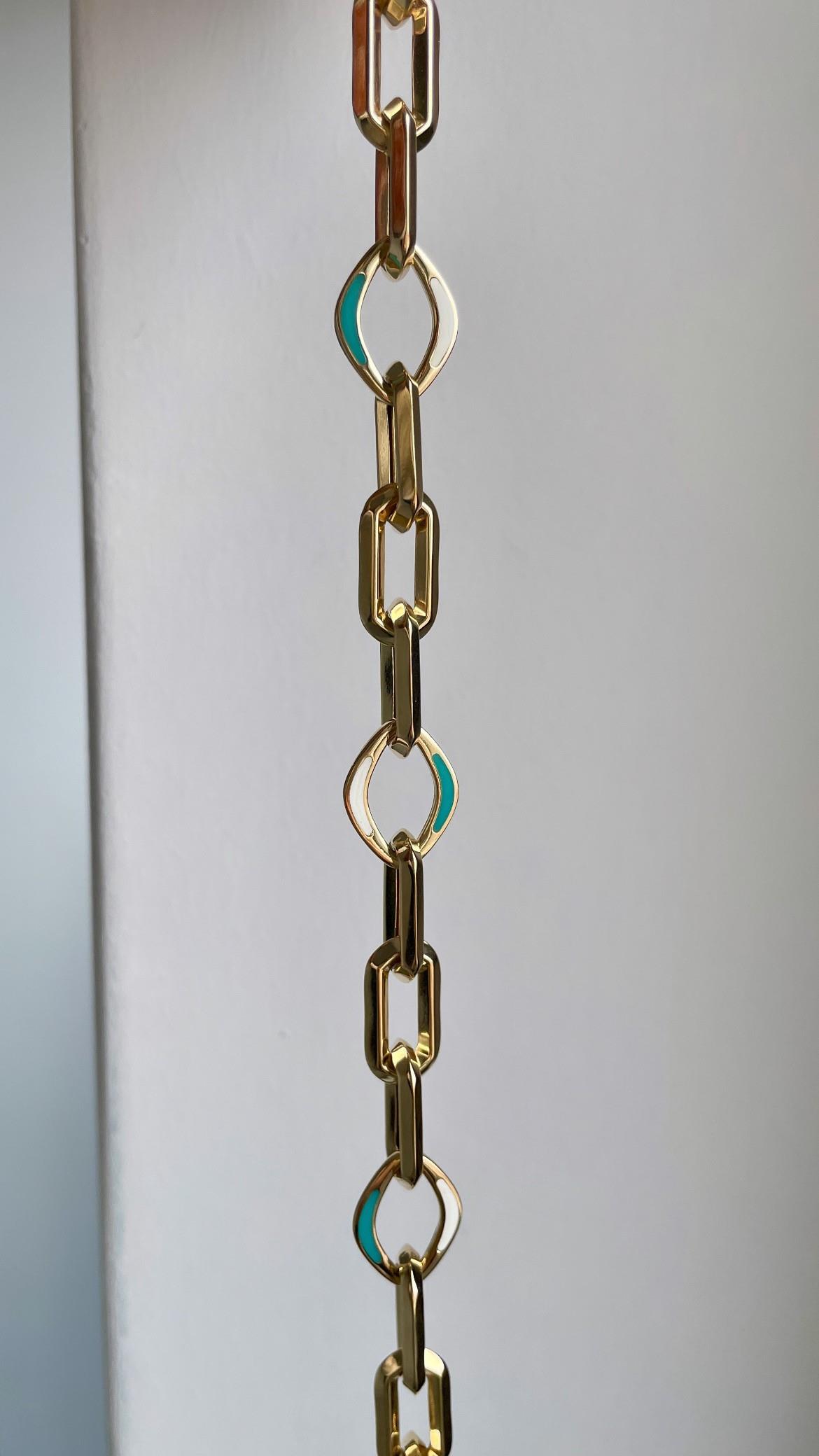 8 Ayar 10,41 Gram Turkuaz ve Beyaz Mineli Altın Ataç Bileklik, zarif ve modern tasarımıyla stilinizi tamamlıyor. Turkuaz ve beyaz minelerin muhteşem uyumu, bilekliğe sofistike bir hava katarken, ataç formundaki zincir detayları çağdaş bir dokunuş sunuyor. Günlük kullanımda veya özel davetlerde şıklığınızı ön plana çıkaracak bu bileklik, zarafeti ve estetiği bir araya getiriyor.