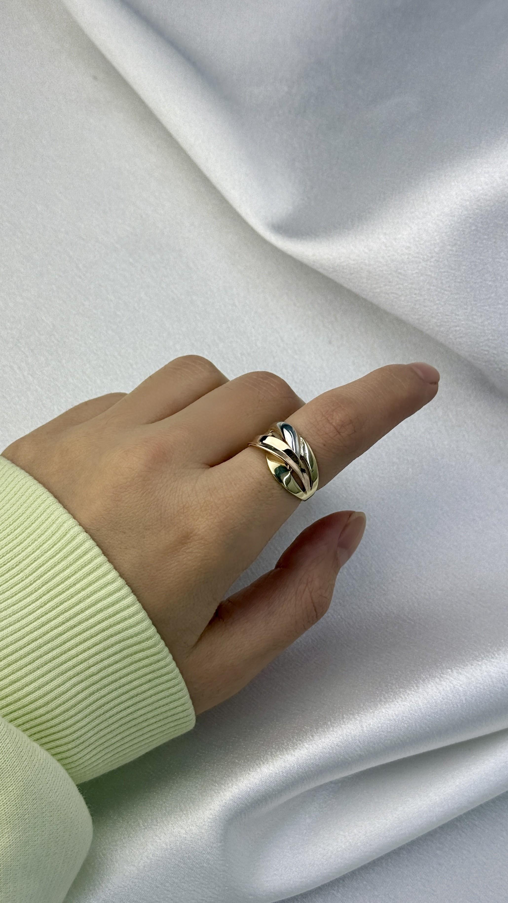 14 Ayar 2,96 Gram Üç Renk Kıvrımlı Altın Yüzük 💛🤍🌸