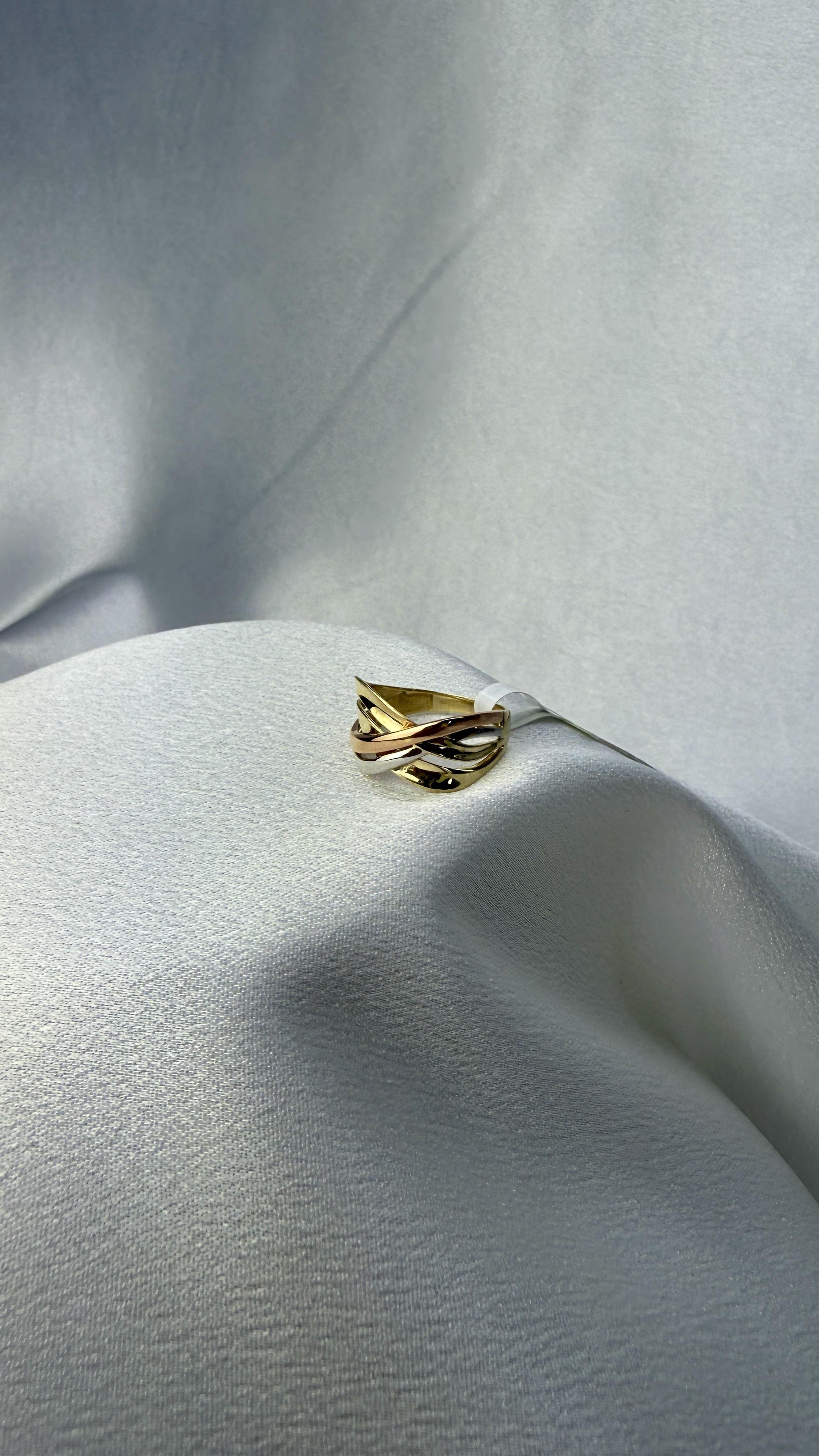 14 Ayar 3,01 Gram Üç Renk Sarmal Altın Yüzük – Zarif ve Işıltılı Tasarım ✨