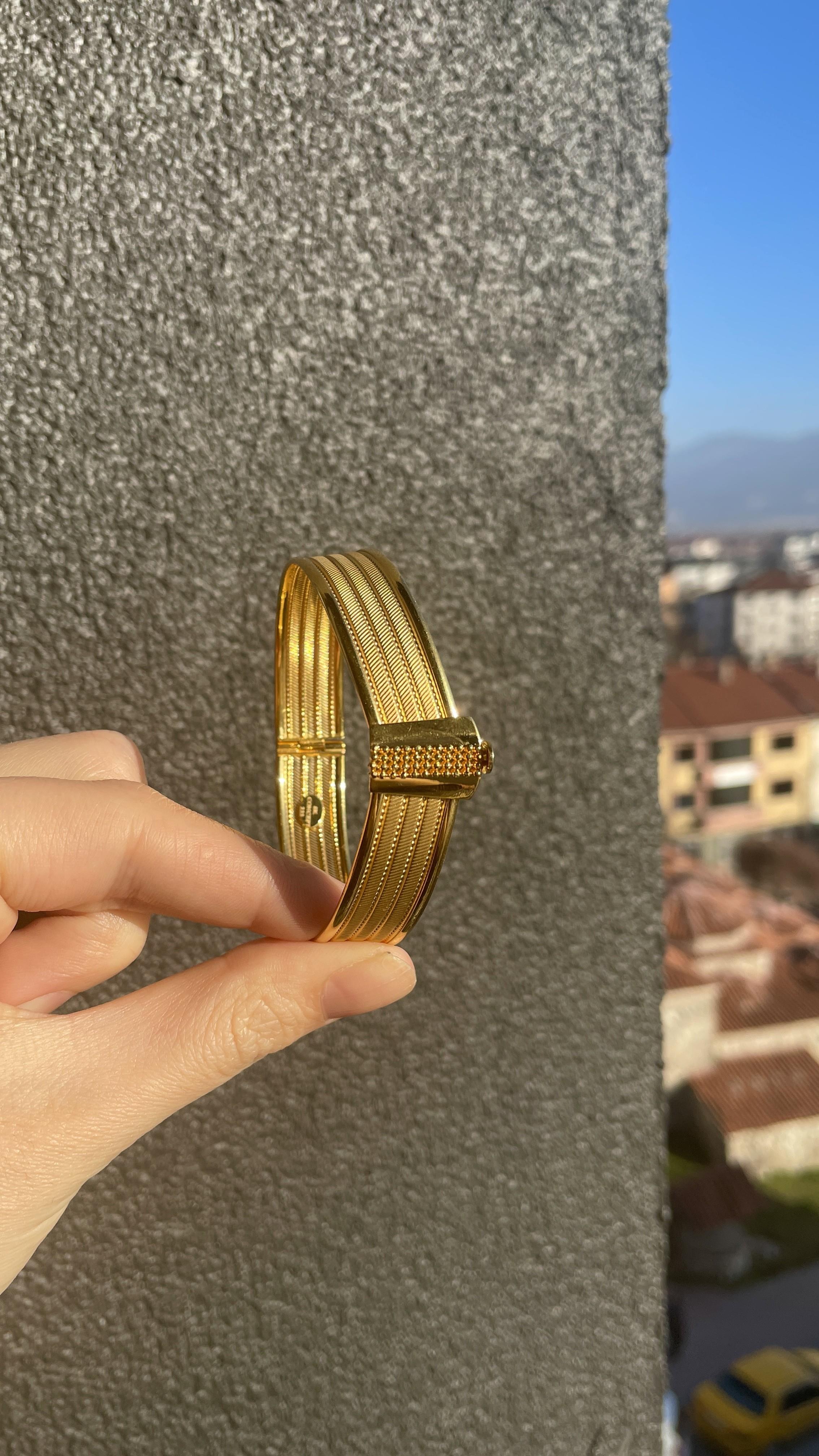 Zarafeti ve ustalığı bir araya getiren Üç Sıra Hasır Kelepçe Altın Bilezik, 8 ayar altın ile özenle tasarlanmıştır. 13,12 gram ağırlığı ve göz alıcı hasır dokusu sayesinde klasik ve modern çizgileri mükemmel bir uyum içinde sunar. Şık ve iddialı tasarımıyla bileğinizde ışıltılı bir duruş sergileyen bu özel parça, hem günlük kombinlerinizin hem de özel günlerinizin vazgeçilmezi olacak. ✨ Zarafetinizi tamamlayacak eşsiz bir altın bilezik!