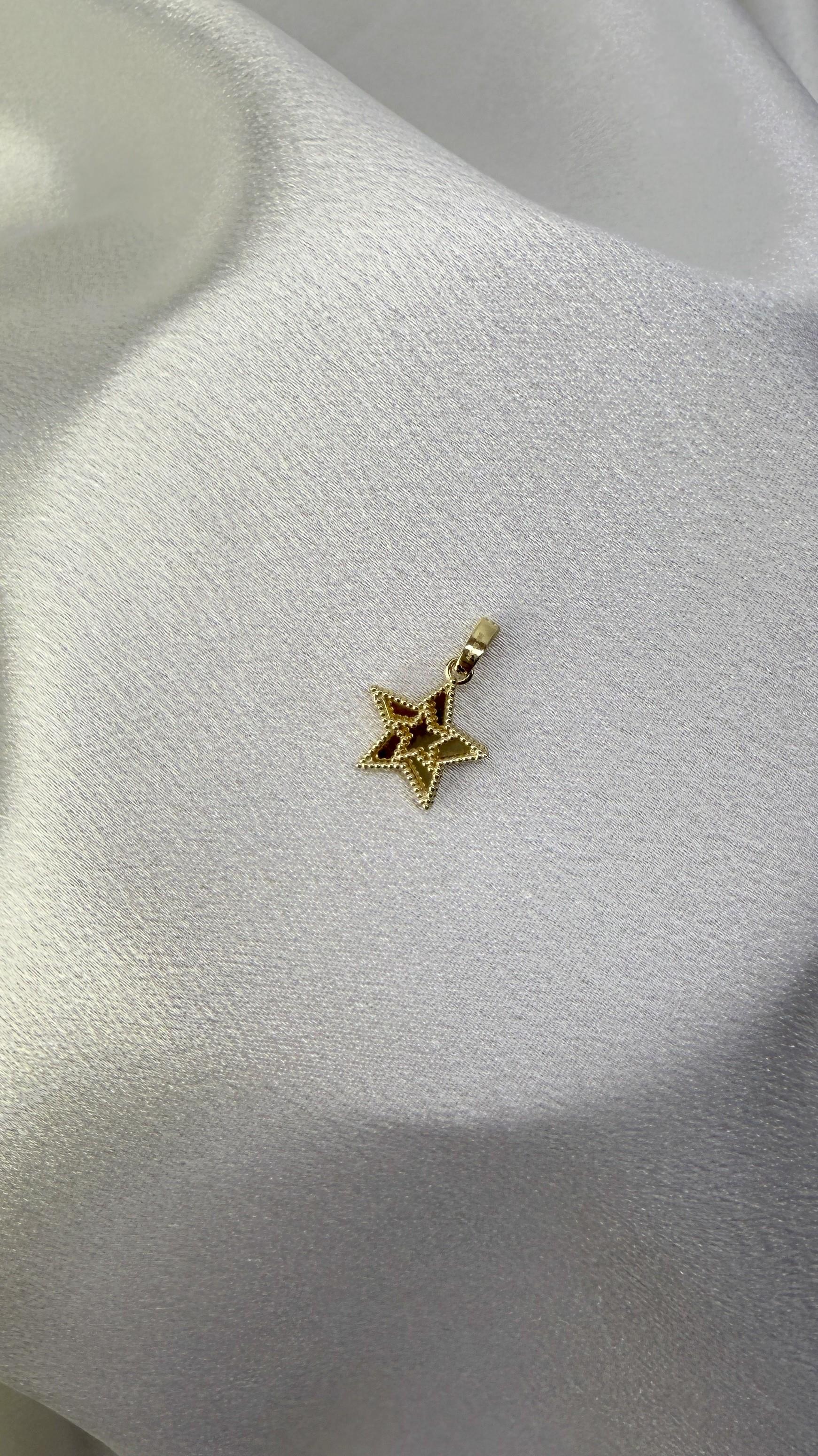 Yıldız figürü; umut, başarı ve pozitif enerjiyi simgeler. Günlük kullanıma uygun olan bu zarif kolye ucu, sevdiklerinize anlamlı bir hediye alternatifi olarak da tercih edilebilir. Kendi tarzınıza uygun bir zincirle tamamlayarak şıklığınızı ön plana çıkarabilirsiniz.