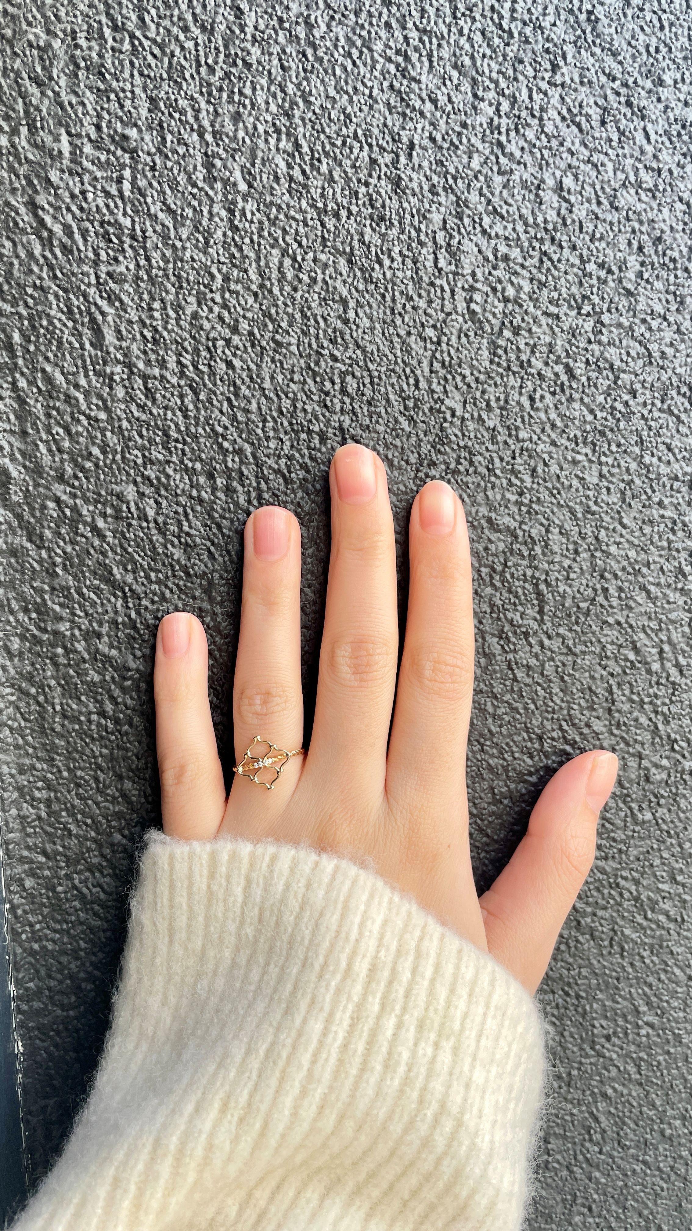 Şans ve zarafetin simgesi yonca deseniyle tasarlanan bu 8 ayar altın yüzük, ince ve zarif yapısıyla parmağınıza ışıltı katıyor. 1,02 gram ağırlığıyla hafif ve konforlu bir kullanım sunarken, şık tasarımıyla günlük ve özel anlarınıza eşlik eder. Şıklığınızı tamamlayan zarif detay!
